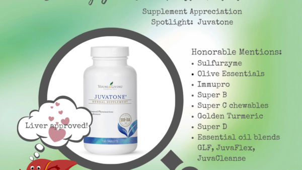 *Young Living’s Juvatone is an amazing supplement designed for liver support. I opt to do a cleanse of some sort a few times throughout the year, and several years ago, one of those cleanses resulted in a skin rash that I could not shake off…..and I had tried nearly everything! My liver just could not handle the toxin load that was being rattled loose from this particular cleanse. It wasn’t until I gave it the support of Juvatone, that I (and my liver!) came to appreciate💃 the liver love in these tablets, and my six week long rash disappeared in just a few days.