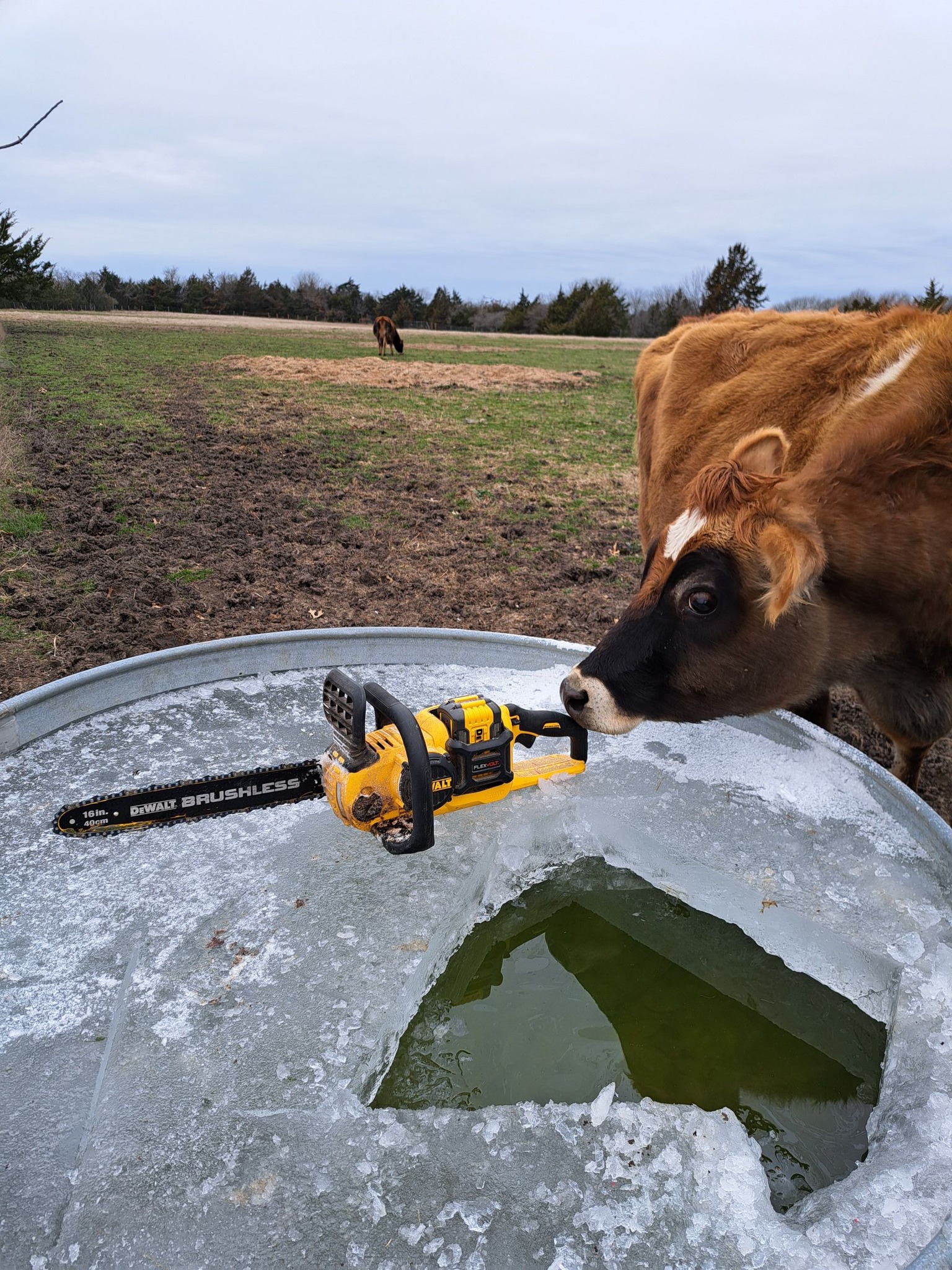 Farmgirl Life in Texas Liz James · February 21, 2025 · POV: when it requires a chain saw to water the cows in Texas…… it’s cold!!!! #farmgirllife