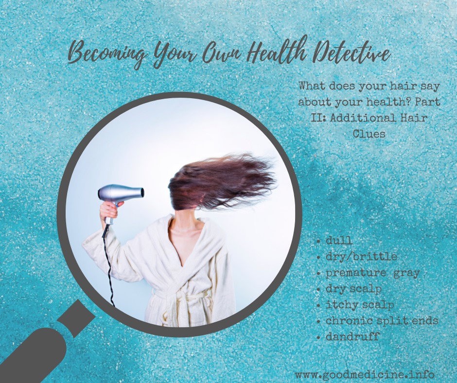 đThe scalp also holds clues! Dandruff is often due to a gut imbalance, an unbalanced diet (where are your Omega 3âs?), or a sensitivity to a food ( commercial dairy is often the perpetrator).